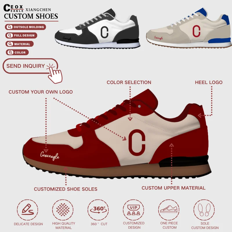 2026 High Quality Genuine Leather Luxury Sports Walking & Running Shoes Men's Breathable Anti-Slip Fashion Custom Brand